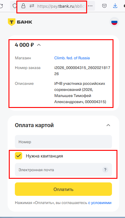В платежной форме банка рекомендуется проверить адрес сайта pay.tbank.ru и «замочек» слева от него.