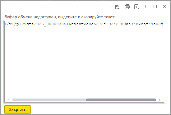 Если при копировании ссылки открывается окно с сообщением Буфер обмена недоступен, это означает, что настройки вашего браузера не дают доступ к буферу обмена - в этом случае необходимо выделить и скопировать ссылку из окна вручную.